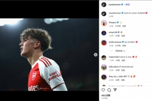 他也以15岁302天成为阿森纳队史最年轻首发,道曼也在赛后通过社媒晒出自己的比赛照并纪念道:“期待更多,感恩!”