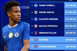体育资讯10月30日讯 本轮联赛杯完赛多场,切尔西和阿森纳双双晋级,两队各有1位18岁小将破门。数据统计显示,两人分列联赛杯最年轻进球榜第6和第7位。