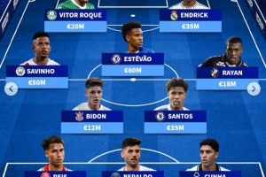 巴西U21最贵阵:埃斯特旺6000万欧最高,罗克、恩德里克突前