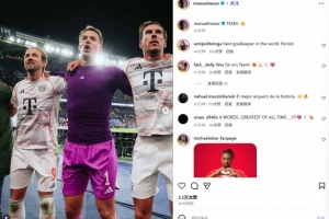 体育资讯11月5日讯 拜仁在本轮欧冠焦点战2-1力克巴黎,诺伊尔在赛后通过社媒庆祝胜利。