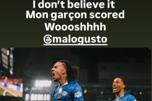 他的队友科尔维尔也通过社媒晒照调侃:“我不相信!我的男孩进球了,嗖!@古斯托”。