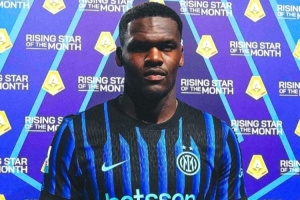 体育资讯11月10日讯 意甲第11轮国米主场迎战拉齐奥的比赛之前,蓝黑军团前锋博尼领取了意甲官方颁发的10月最佳球员奖项。