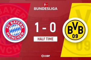 体育资讯10月19日讯 北京时间10月19日凌晨0时30分,2025-26赛季德甲第7轮国家德比在安联竞技场展开角逐,拜仁慕尼黑主场迎战多特蒙德。上半场凯恩头球破门+联赛7轮12球,基米希角球助攻,拜仁主场暂时1-0领先多特。
