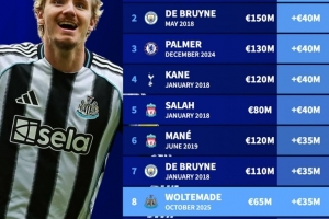 英超历史单次身价涨幅榜:萨拉赫+7000万欧居首,沃尔特马德在列